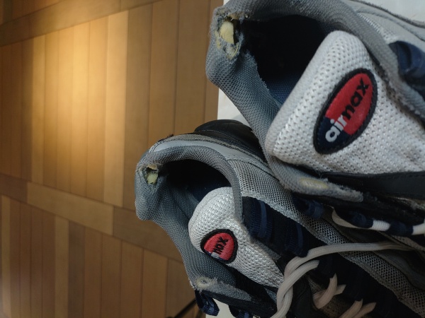 今回、長年ご愛用されているスニーカーのかかと内側の修理をご依頼いただきました